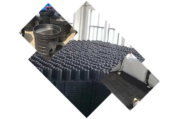 • 從材料上看:雨水模塊的材料是PP(聚丙烯),又稱PP模塊,鴻哲環保研發模塊原材料時添加了碳酸鈣、玻璃纖維等材料增加產品韌性,從而提高產品的承載力。